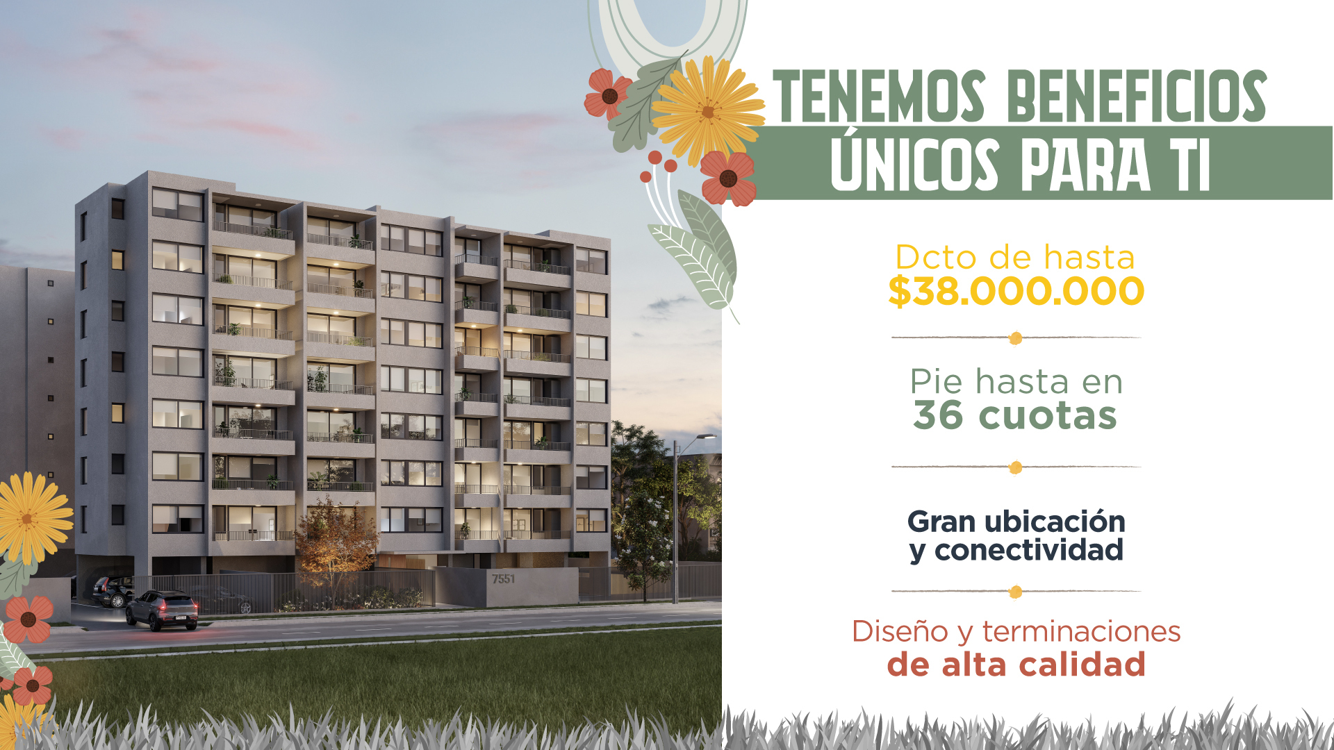 Edificio sólo de 8 pisos. Más privacidad y seguridad.